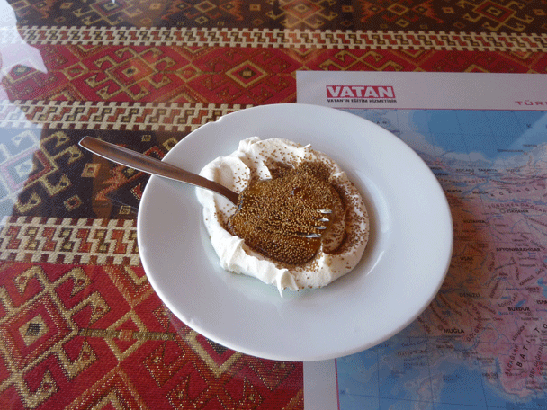 デザートで、堅いヨーグルトに堅い蜂蜜をかけ、その上にケシの実?