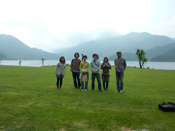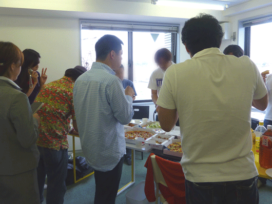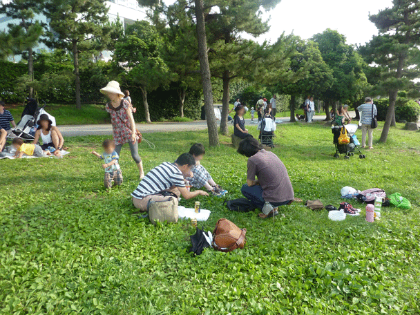 いつもは室内にいる私達も、この日は東京湾の芝生で